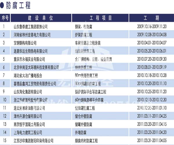 宏順建設(shè)核心技術(shù) 宏順建設(shè)專業(yè)防腐各種水塔防腐,儲油罐防腐,管道防腐,吊機防腐,龍門吊防腐,水泥筒倉防腐工程,有多年的成功經(jīng)驗,施工業(yè)績遍布全國各地... 了解詳情